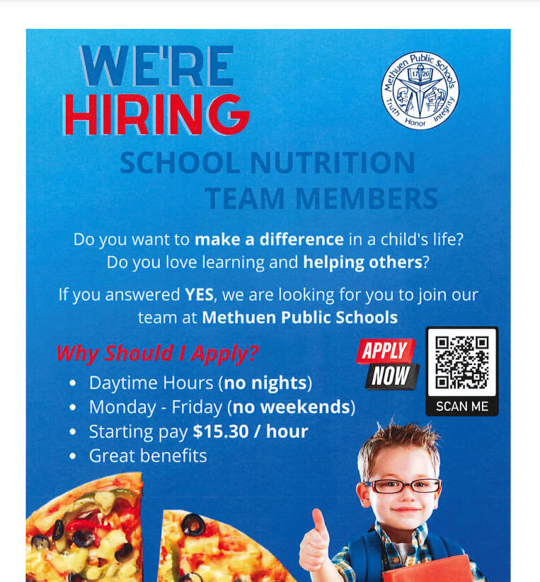 Methuen Public Schools has launched a hiring initiative to expand its school nutrition team, inviting community members to apply for positions that support student well-being and daily learning.The...